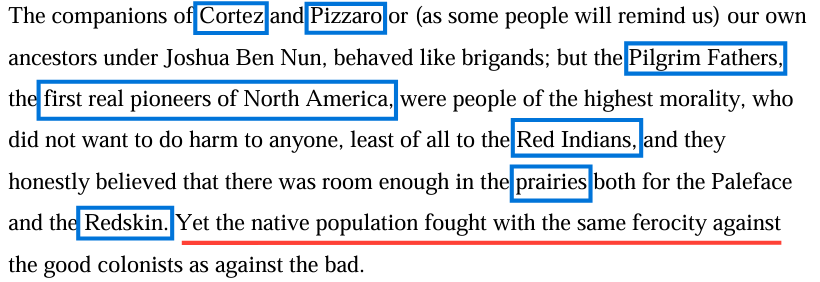 By looking to Spanish (Cortez and Pizzaro) and American (Pilgrim Fathers) colonization, Jabotinsky recognized that the “Aztecs” and “Red Indians” would never let the pioneer “Pale faces” take their lands without a fight, so why would the Natives in Palestine? After all, there is not enough room on the “prairies” or “ancient Mexico” for the pilgrims and the “Redskin”—as per his brilliant understanding of history.