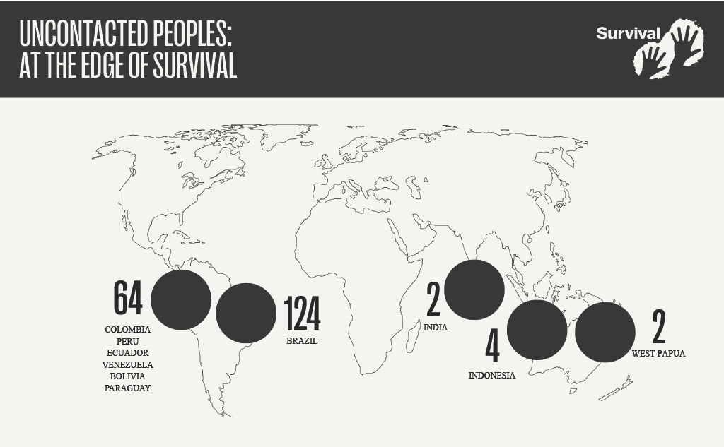 Around 2000, Survival International estimated there were 70 uncontacted peoples worldwide. But after decades of research, Survival found there are at least 196 groups, based upon the most detailed and up-to-date survey of uncontacted groups.